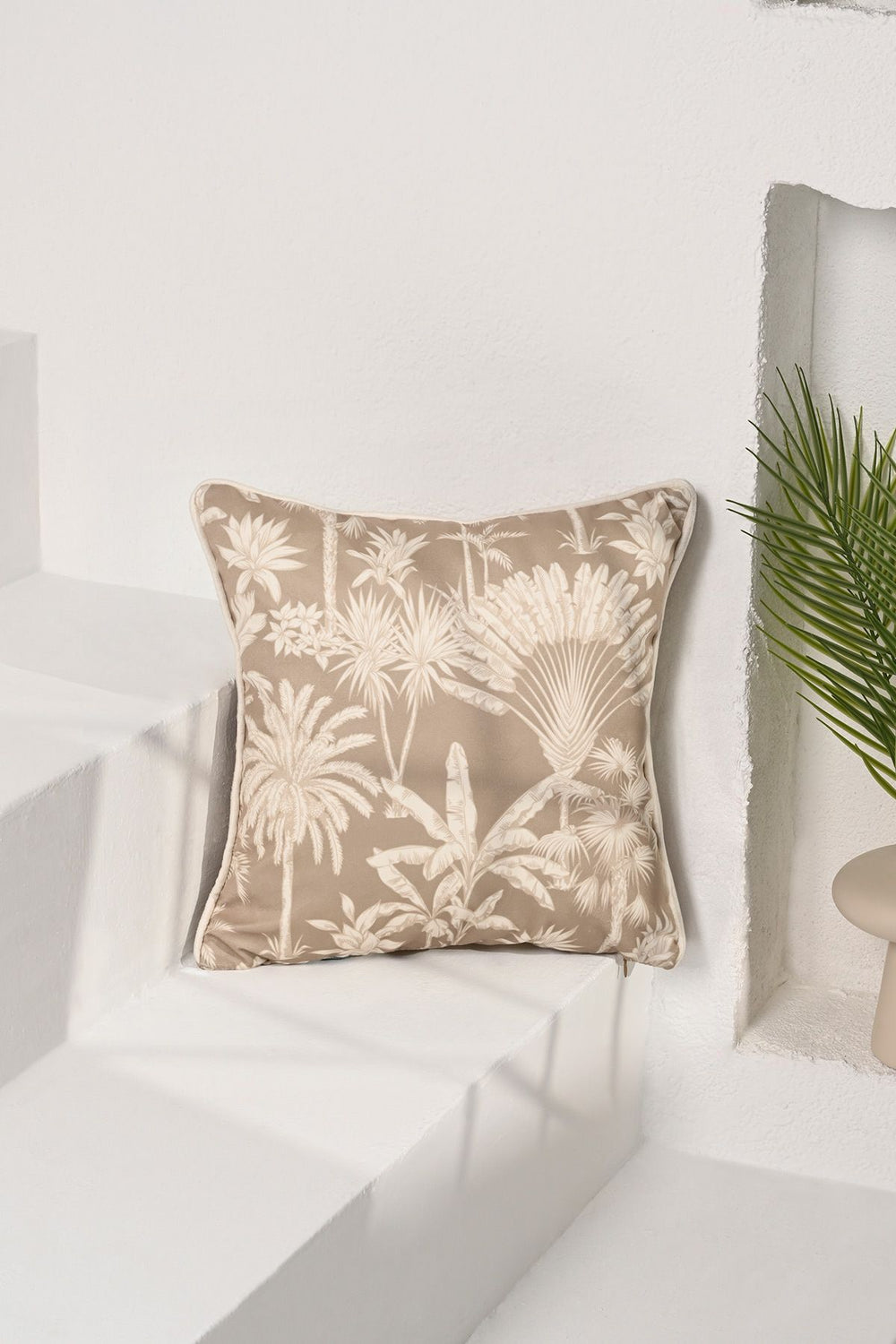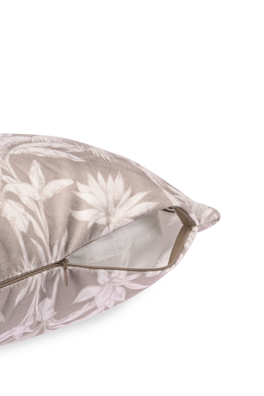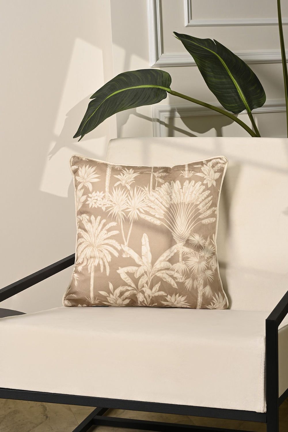 This special cushion cover, combining the tranquility of natural tones with tropical patterns, is designed to add elegance and serenity to your living spaces. Its soft velvet surface and wicker edge details offer both elegance and comfort.