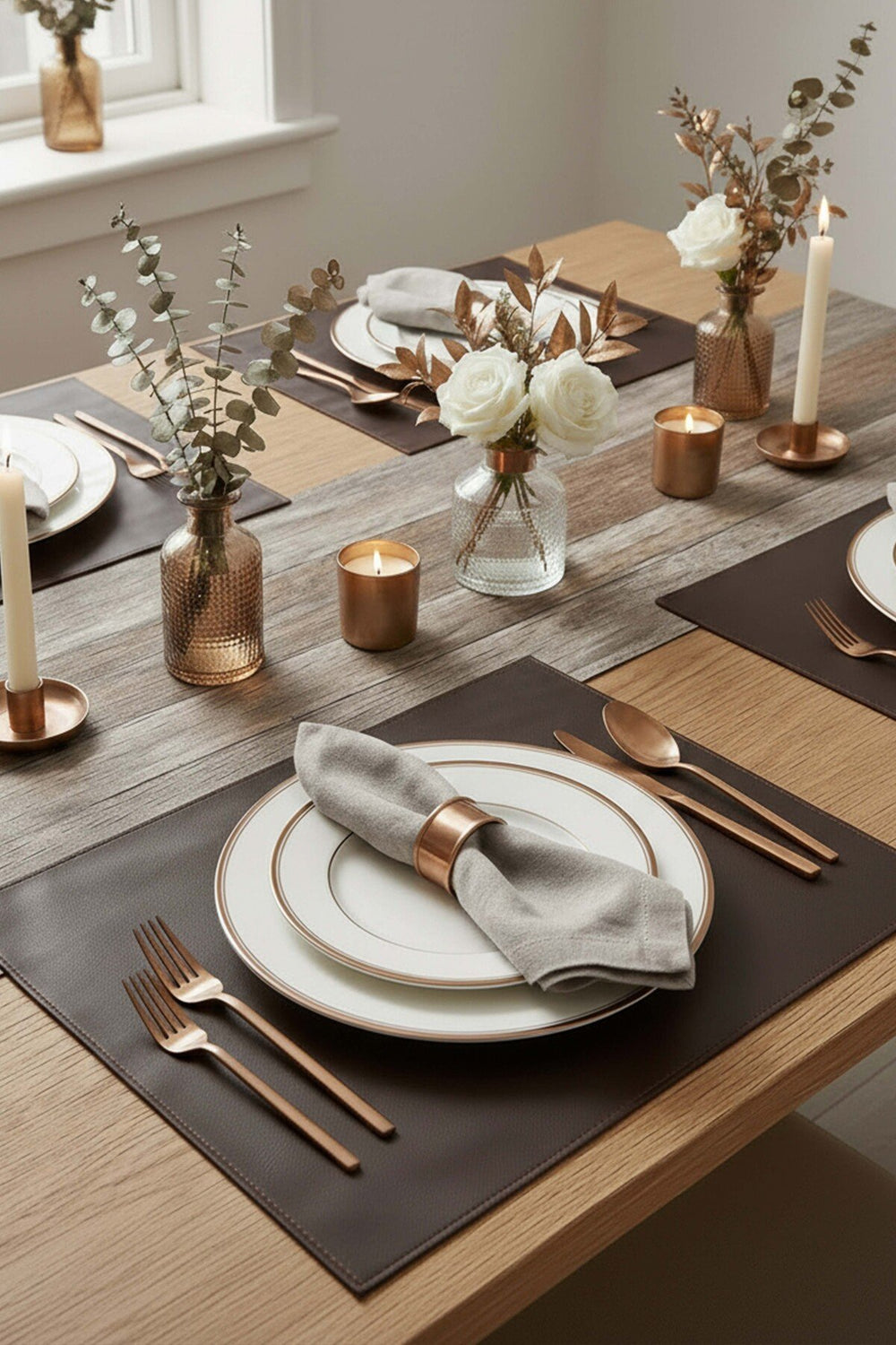 Doğal kahverengi tonuyla sıcak ve zamansız bir şıklık sunan Block Amerikan servis seti, dikdörtgen formu ve beyaz nakışlı kenar detayıyla sofralarınıza sade bir zarafet katıyor. Dayanıklı suni deri yüzeyi sayesinde hem estetik hem de pratik bir kullanım sağlar. İki adet olarak sunulmaktadır.