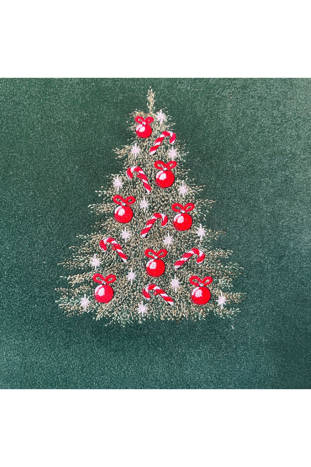 Experience elegance and warmth with this elegant cushion cover that will bring the spirit of Christmas to your home. Its soft green velvet fabric is adorned with eye-catching embroidery patterns. The "Christmas Tree" and its ornaments add a special touch.