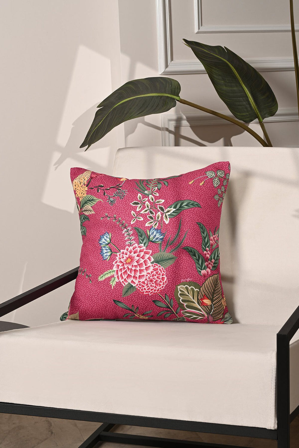 This pink botanical floral patterned cushion cover will add an elegant touch to your home decor. Its special stain-resistant fabric makes it long-lasting and practical. Its hidden zipper detail adds a stylish touch, and its 43x43cm dimensions make it the perfect complement to armchairs, beds, and armchairs.