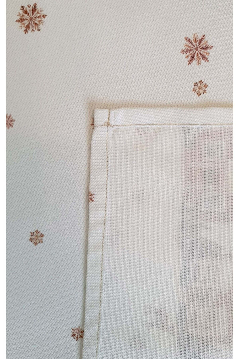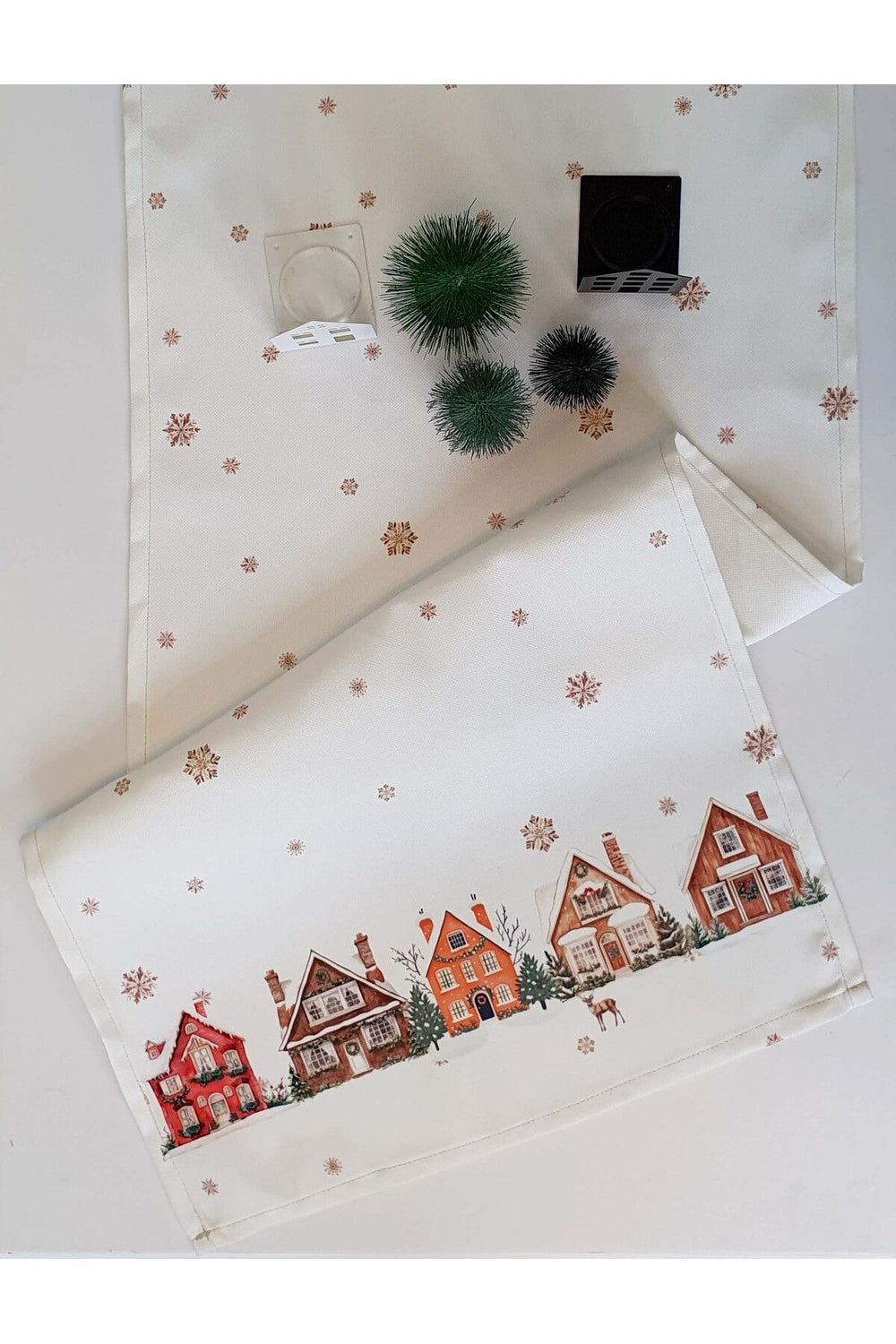 This Christmas-themed digitally printed runner is designed to add warmth and elegance to your home table. Its nostalgic home prints bring the charming atmosphere of winter to your home, while the snowflake-adorned background adds a stylish touch. Measuring 140x45cm, this runner is the ideal size for decorating dining tables or console tables.