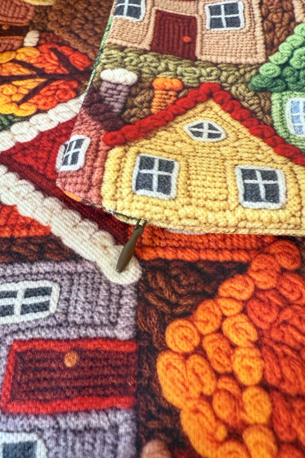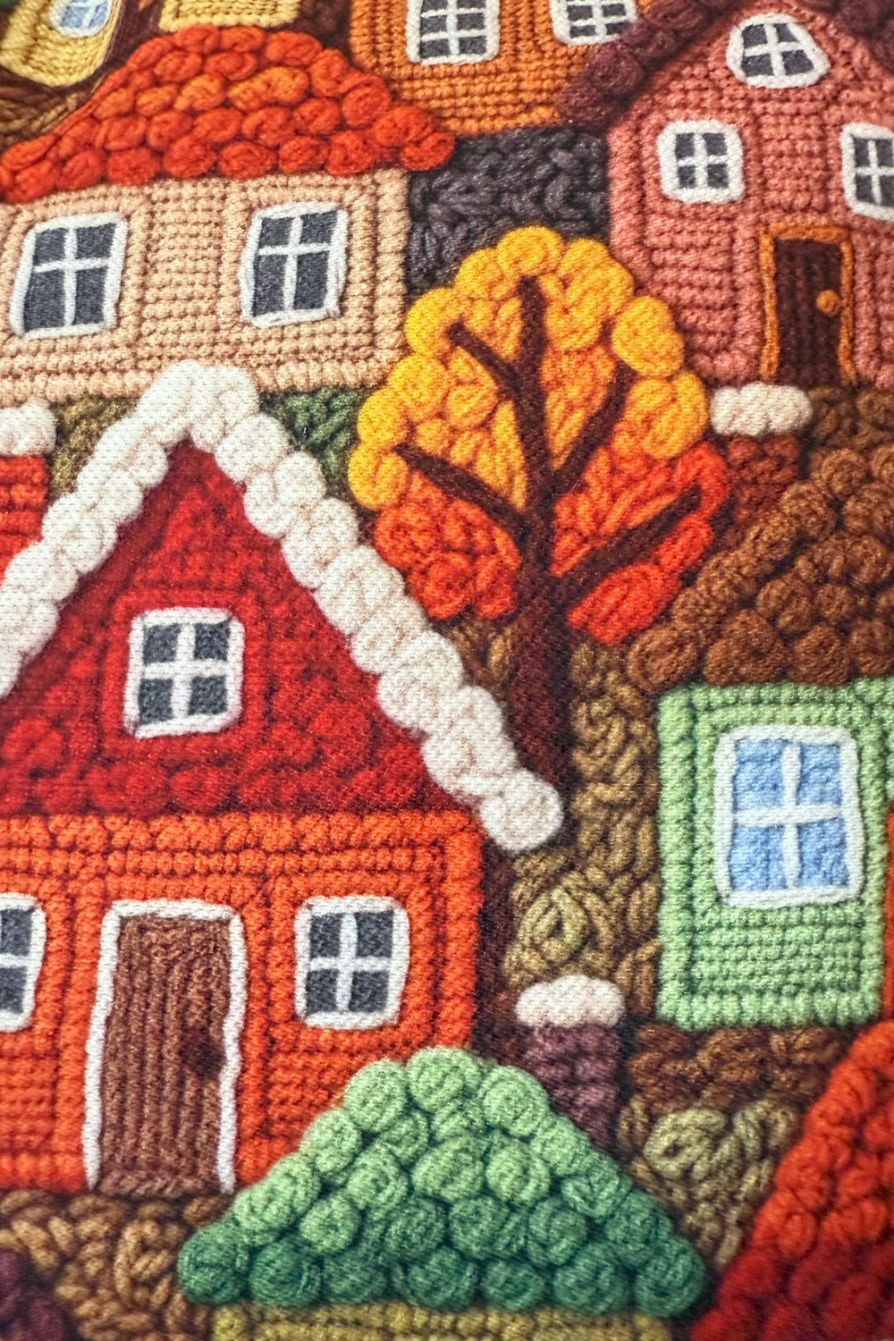 Her evin bir hikâyesi vardır. Bu kırlent, birbirine yaslanmış minik evleriyle çocuklukta çizdiğimiz o masalsı kasabayı anımsatıyor. Renkli çatılar, dar sokaklar ve pencerelerden sızan sıcak ışıklar... Evinizin bir köşesinde, hayal gücünüzü gülümseten bir mahalle kurmaya ne dersiniz?