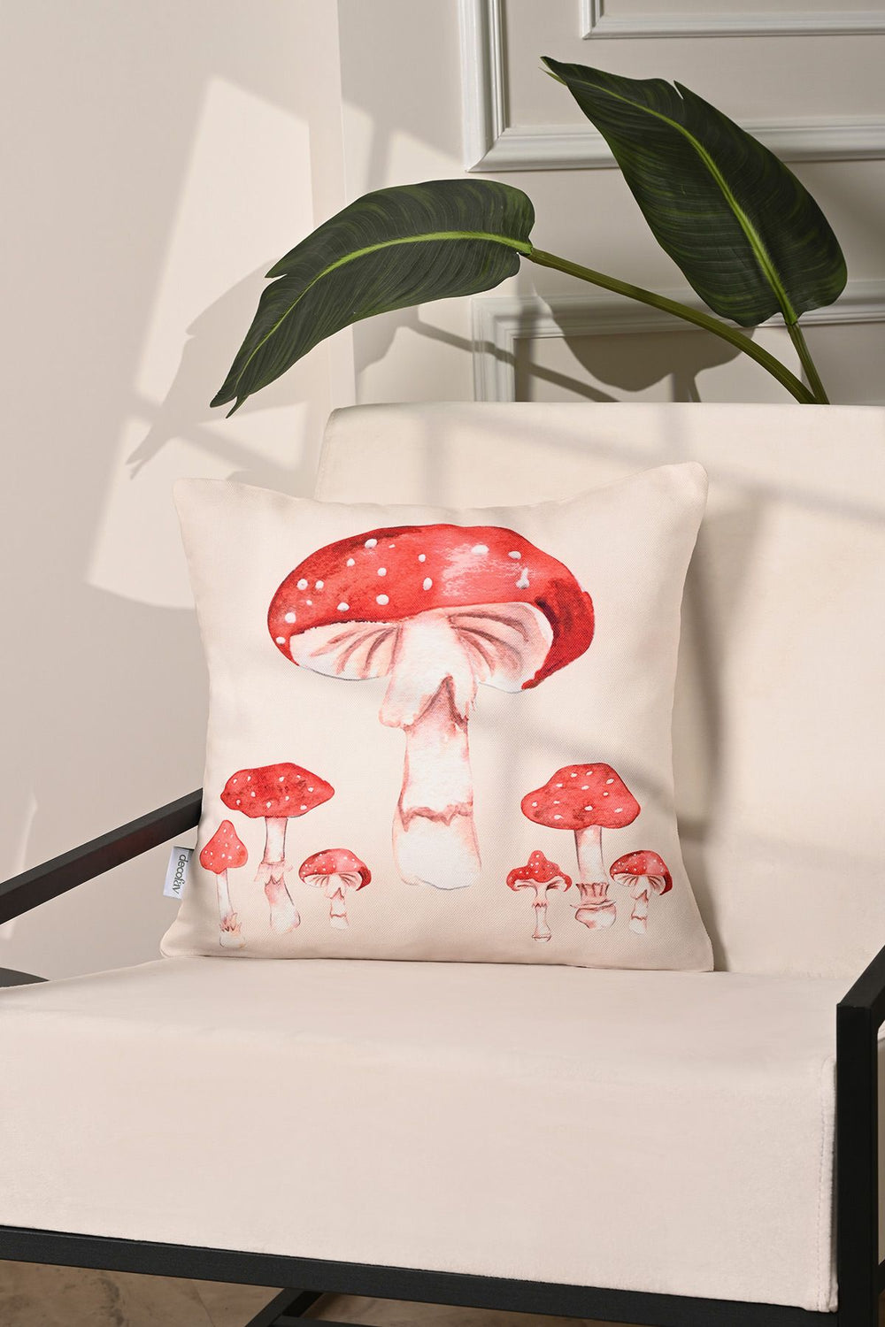 Doğadan ilham alan kırmızı mantar desenleriyle tasarlanmış bu dekoratif kırlent, iç mekânlarınıza doğal, neşeli ve dikkat çekici bir hava katar. 43x43 cm ölçüsünde üretilmiş bu kılıf, özellikle doğa temalı ve rustik dekorasyonlarda fark yaratır.