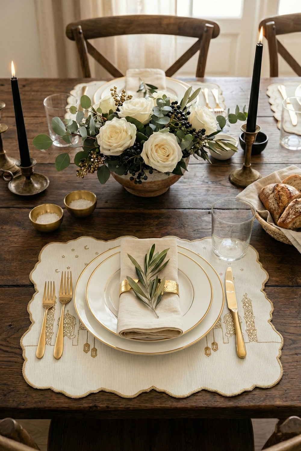 Sanatsal toile desenleriyle bezenmiş Tableau Amerikan servis seti, pastoral sahneleri zarif bir şekilde sofralarınıza taşır. Scallop formundaki nakışlı kenarları ve yeşil tonlarıyla hem nostaljik hem de şık bir görünüm sunar. %65 pamuk ve %35 polyester karışımı kumaştan üretilmiştir. İki adet olarak sunulmaktadır.