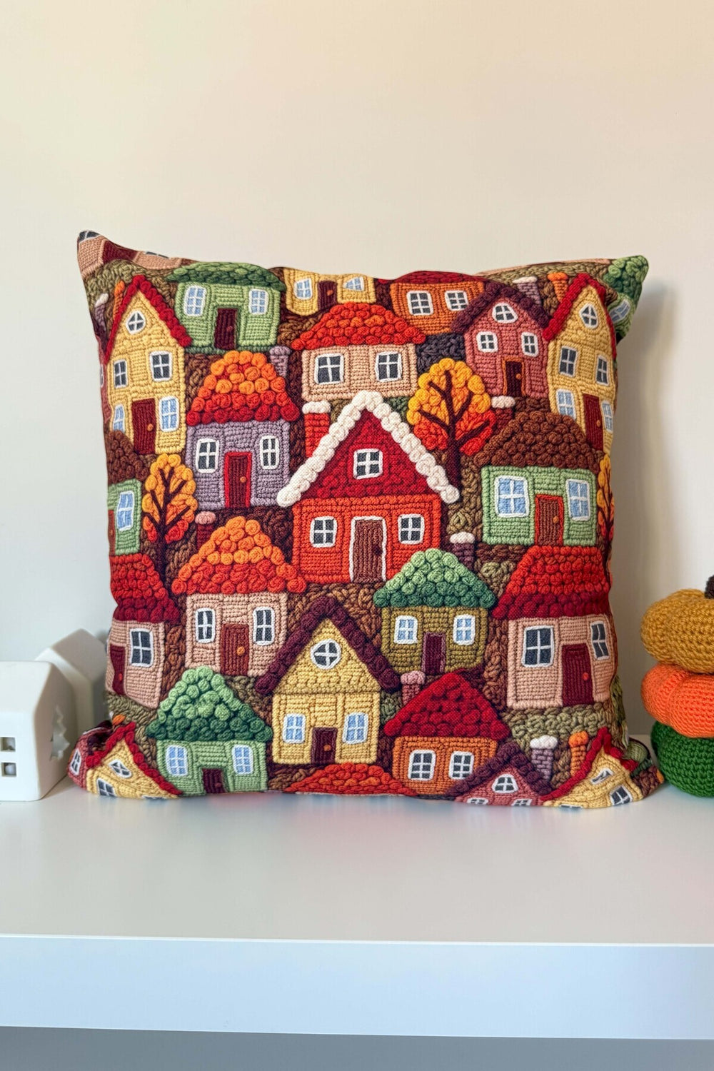 Her evin bir hikâyesi vardır. Bu kırlent, birbirine yaslanmış minik evleriyle çocuklukta çizdiğimiz o masalsı kasabayı anımsatıyor. Renkli çatılar, dar sokaklar ve pencerelerden sızan sıcak ışıklar... Evinizin bir köşesinde, hayal gücünüzü gülümseten bir mahalle kurmaya ne dersiniz?