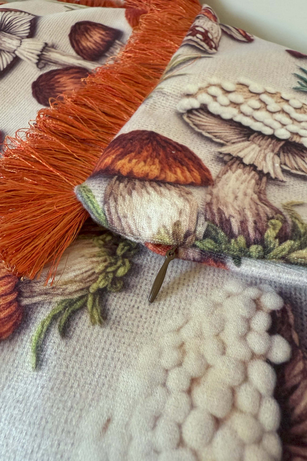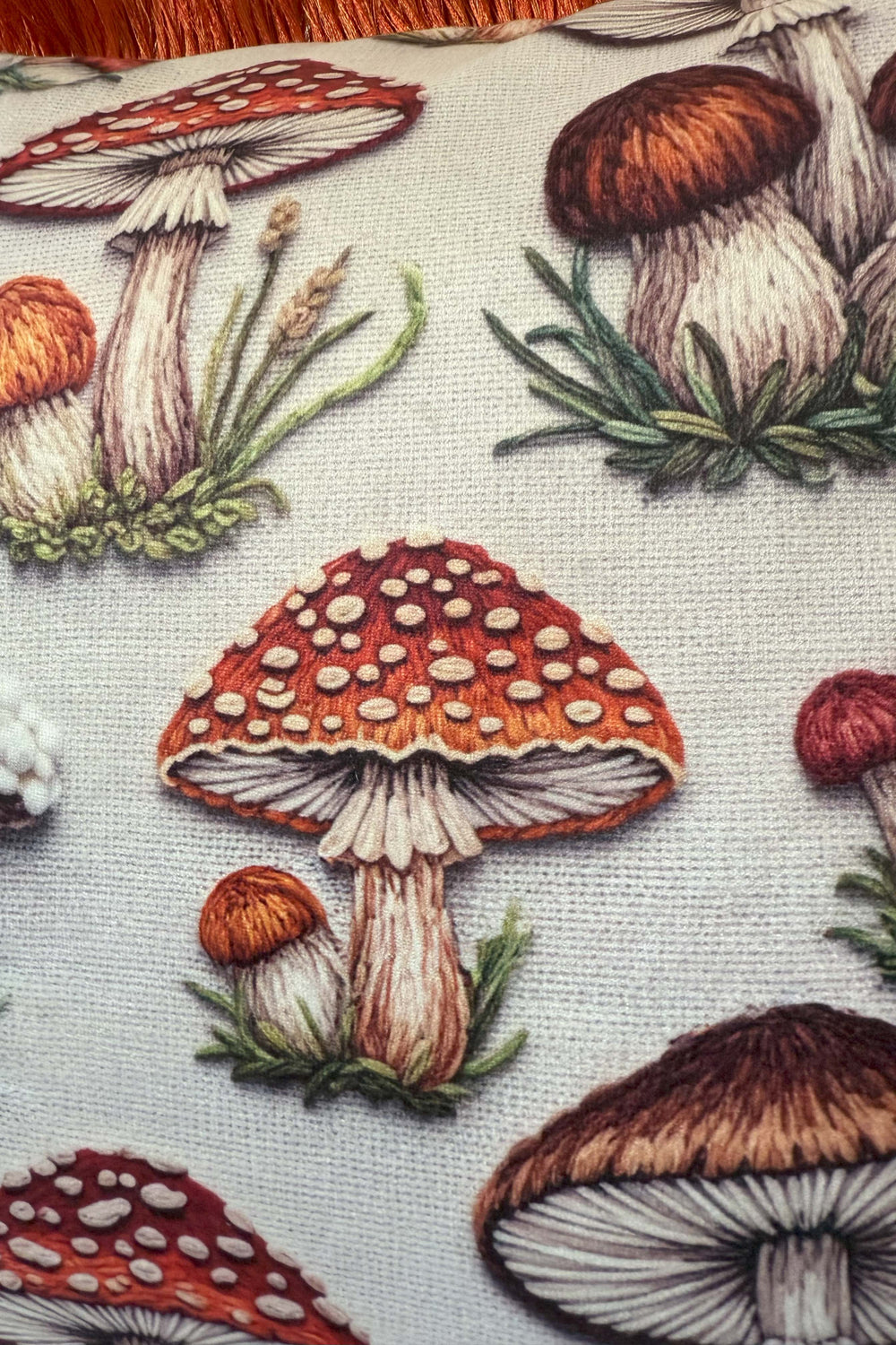 Her mantar, toprağın sessiz hikâyesini anlatır. Bu kırlent, kırmızı püskülleriyle doğanın enerjisini ve çeşitliliğini evinize taşıyor. Farklı türde mantarların bir araya geldiği bu tasarım, hem sanatsal hem de doğayla iç içe bir atmosfer yaratıyor. Sonbaharın renkleriyle bezenmiş bir orman yürüyüşü gibi...